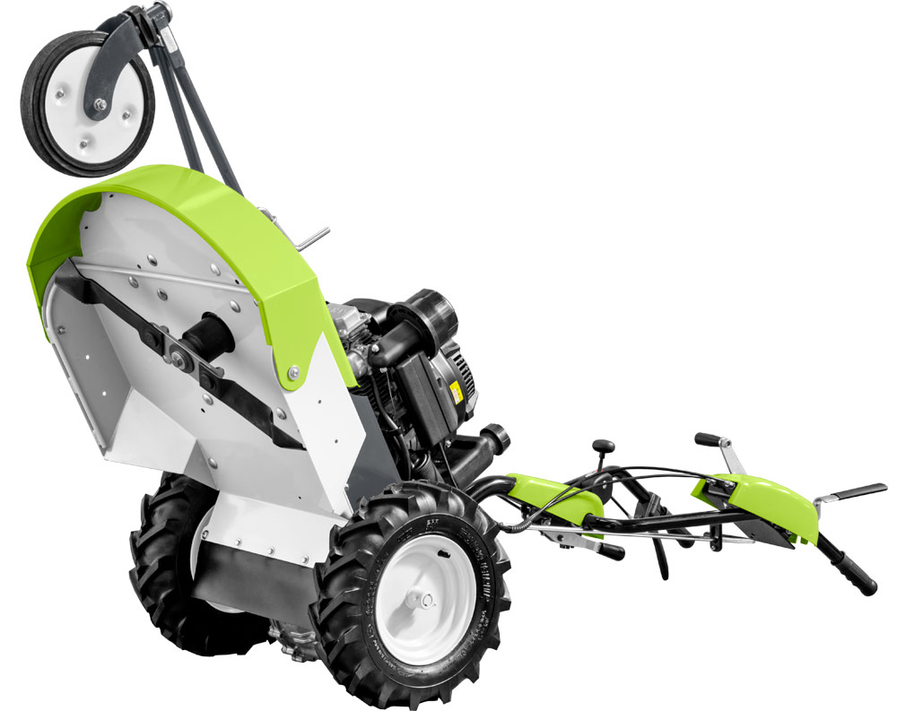 Durante il lavoro è possibile utilizzare il manubrio con una sola mano, questo permette di regolare l'avanzamento e la retromarcia tramite il comando sul manubrio. Quando si effettua il taglio lungo pendii, vicino ad alberi ed altri ostacoli, oppure se si stanno trinciando sterpaglie e arbusti sotto rami bassi, questo sistema di regolazione dell'avanzamento risulta molto utile!