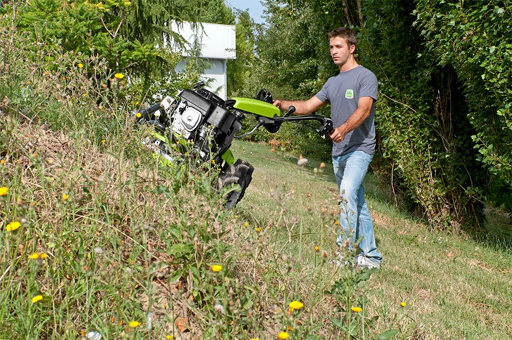 Il taglio, anche in condizioni di pendenza estreme e terreni sconnessi, non è mai stato così facile grazie alle ruote artigliate ed al bloccaggio differenziale.