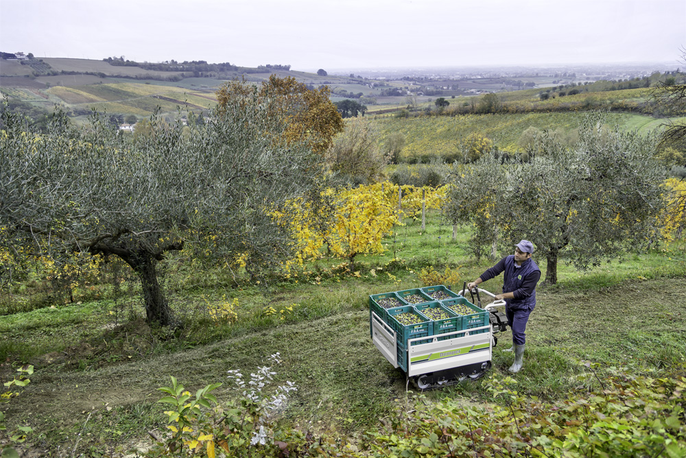 Il profilo dei cingoli permette la trazione in tutte le condizioni di terreno. Offrono la giusta stabilità e sicurezza in terreni con poca portanza, friabili e con forti pendenze.