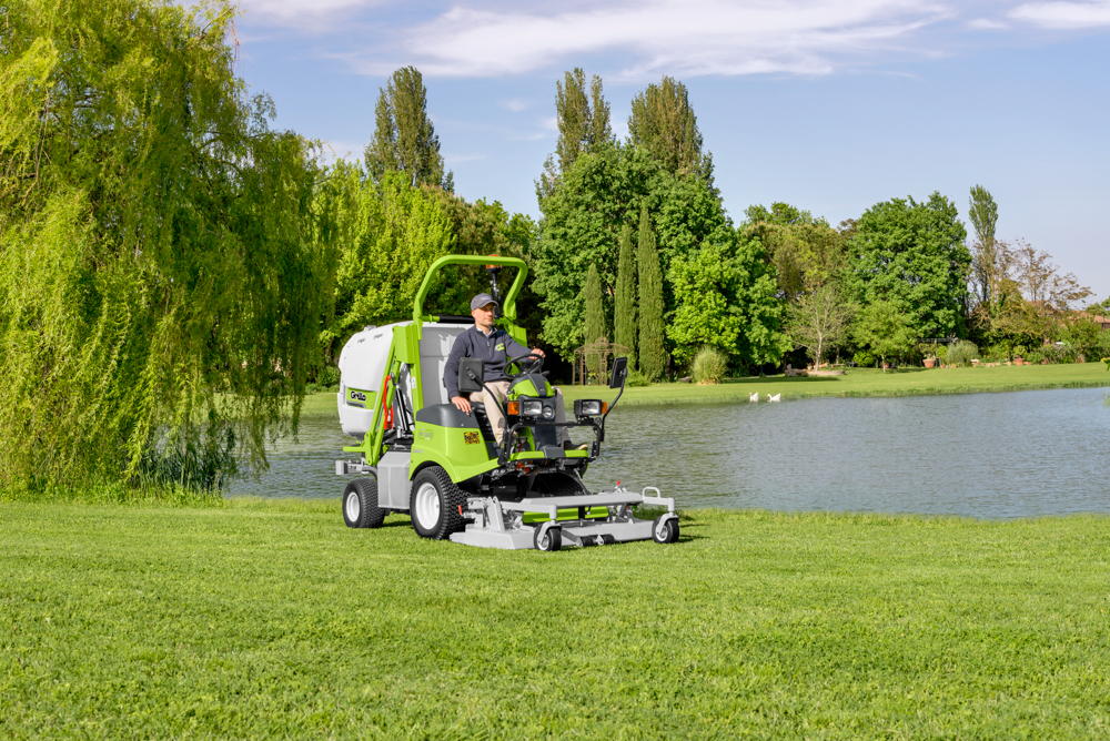 Both decks are equipped with hydraulic cutting height adjustment via an electric button from the driver's seat and are supplied with a mulching kit as standard.