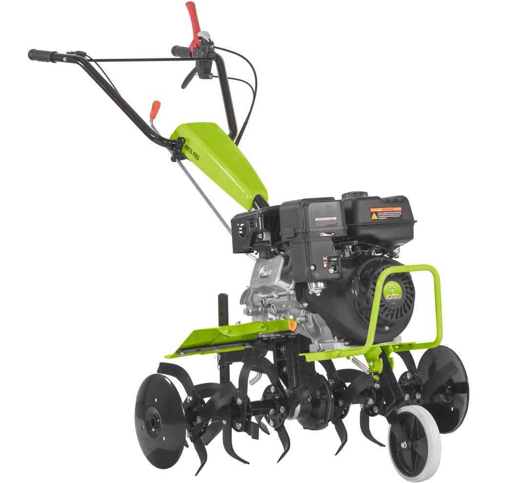 Le Grillo HR76 PRO est équipé du moteur à essence Loncin G300FA, d'une puissance de 9,3 CV (6,8 kW).Il s'agit d'un moteur de dernière génération qui présente les meilleures caractéristiques pour une utilisation agricole, notamment un excellent couple dès les bas régimes. Robuste, fiable et silencieux, il est équipé d'un système qui réduit la force nécessaire au démarrage. Un nouveau pare-chocs avec roue de transfert intégrée est de série. Le réservoir de carburant a une capacité de 6,1 litres.