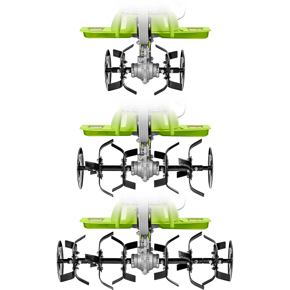 Vengono forniti di serie due speroni: uno per terreni soffici e uno per terreni duri. La regolazione dello sperone determina la profondità di lavoro.