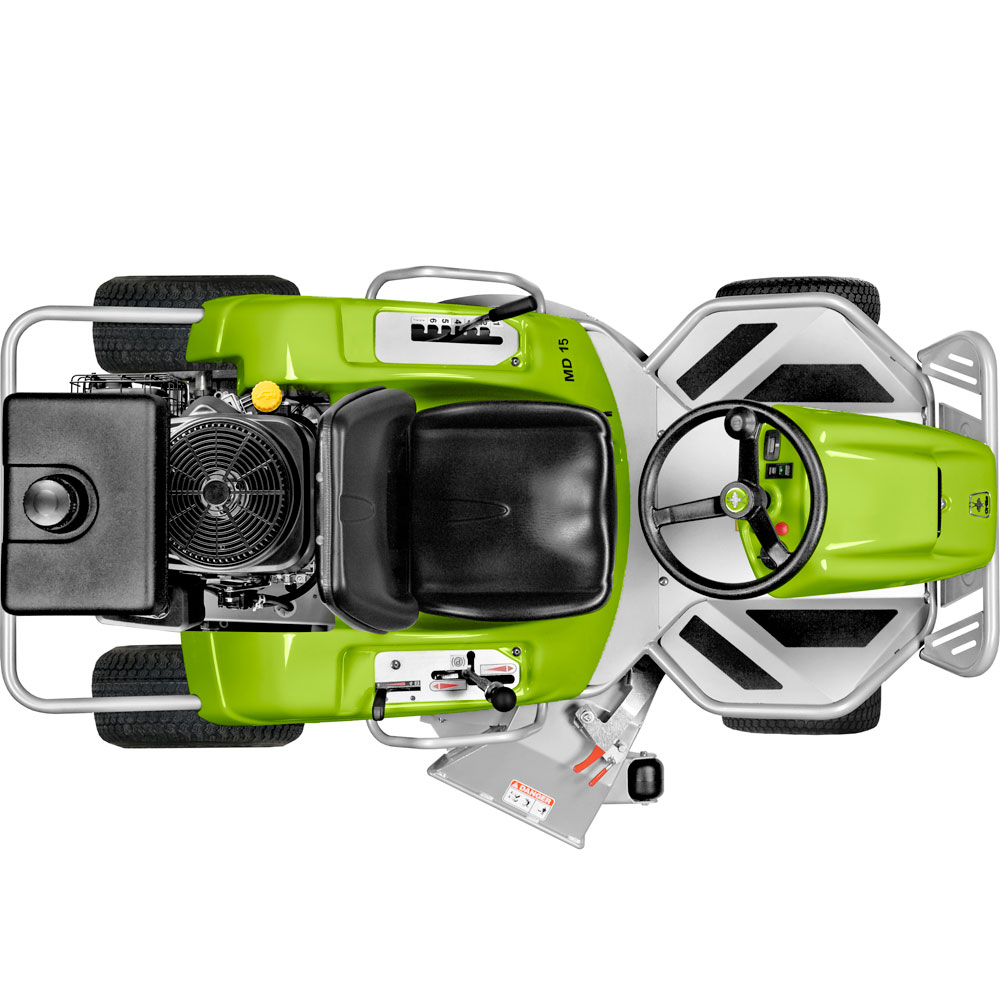 L'erba tagliata viene convogliata nel carter laterale in acciaio. Il carter sporgente è costruito a norma garantendo la sicurezza ottimale per l'operatore. È inoltre dotato di rullo antiscalpo.