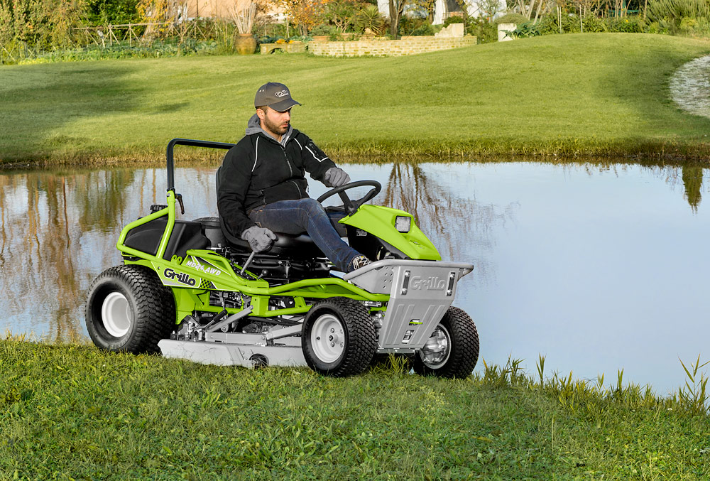 Rasaerba idrostatico a 4 ruote motrici, doppia funzione di taglio, scarico posteriore e Mulching, bloccaggio differenziale e piatto da 110 cm